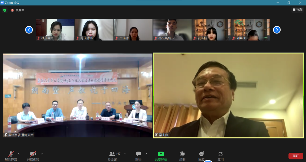 北京时间2022年5月21日早晨8:30,由日本a片 与越南东亚大学合作教学的口语课程顺利举行结课典礼。日本a片 院长邵宜、汉语系党总支书记余志远、汉语系主任王衍军、汉语系副主任金颖、汉语系副主任林奕高、越南东亚大学校委会主席梁明参、中文系主任制岳东、课程组的授课教师、助教以及参与课程的150位学生在云端相聚,共享此次圆满结课的喜悦。结课典礼由王衍军主持。
